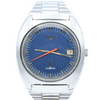 1976 Longines Large Ultronic Date Tonneau Wristwatch with Electric Blue Dial Model 8479 in Stainless Steel Case on Bracelet with Box