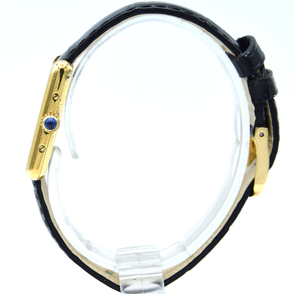 It wasn’t until 1976 that the in-house Must de Cartier Tank was launched, the first product in the in-house Must line. These Tanks were made of vermeil, or silver gilt, which is gold-plated sterling silver. This made the new line more affordable whilst still having the prestige of being made from a precious metal. Various sizes, dial colours and finishes were then produced for both men and women. The Must de Cartier line was faded out at the beginning of the 21st century.