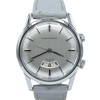 This Girard Perregaux Alarm Watch dates to the 1960s and features a 34.5mm Case in steel, with an attractive silvered dial, baton handset, and rectangular hour markers. The alarm functionality appears via an aperture near the six o'clock position that houses a 24-hour wheel; a small arrow is placed above the dial opening that allows the alarm to be set with precision to the nearest quarter hour, or in between for slightly less precise moments. The watch features two crowns. The upper crown is branded with an "A" symbol (for alarm), and it controls the winding and setting of the alarm complication; when the alarm is wound to its full capacity, you can expect the hammer to ring for more than 10 seconds. Leave the crown open once the alarm is set, and when it rings, all that is required is pushing the crown in to silence the alarm. The lower crown winds and sets the normal timekeeping display.