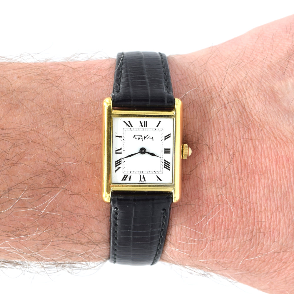 This Watch We have here an incredibly elegant and high grade solid sterling silver Designer Royking Tank wristwatch...
