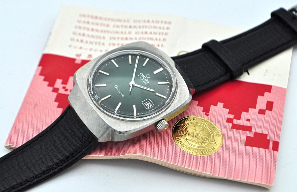 This Watch We're not sure if we've seen a more 1970s Omega Geneve! We love the green, fume...