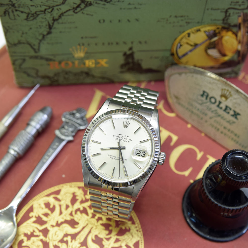 This Watch Our 1978 Rolex Oyster Perpetual Datejust 16014 has a 36mm Oyster case in stainless steel and...