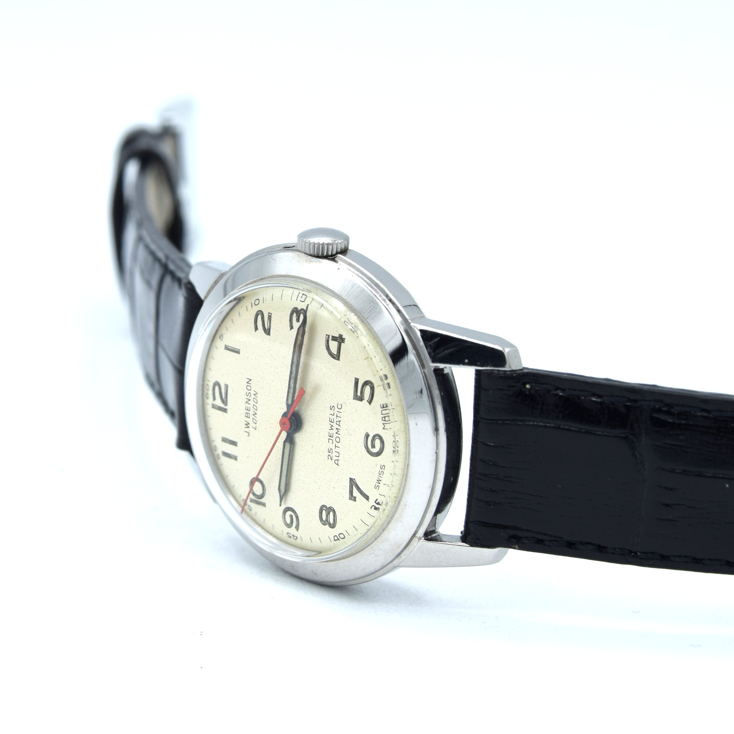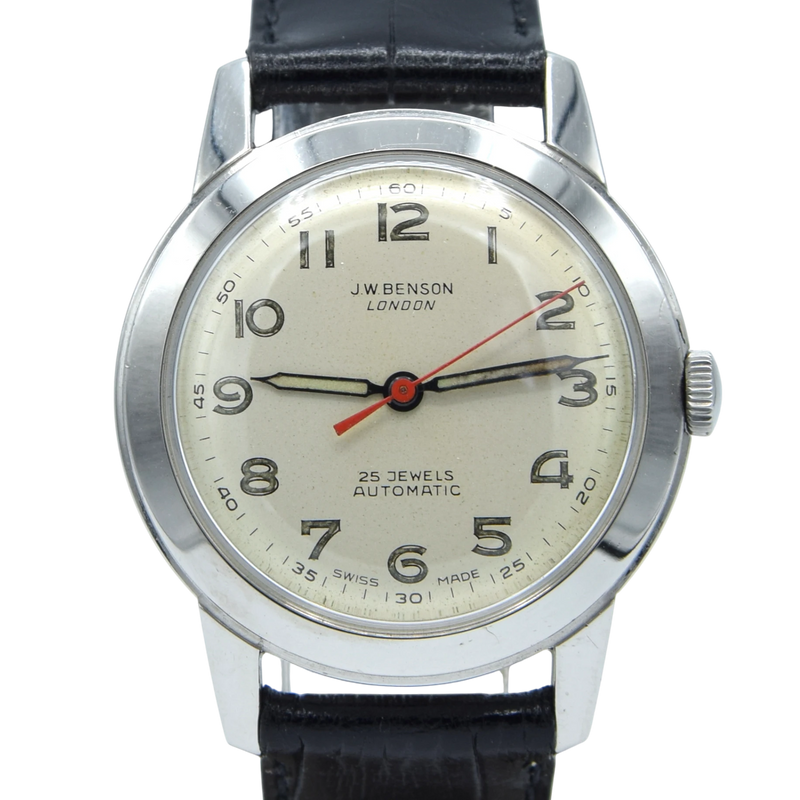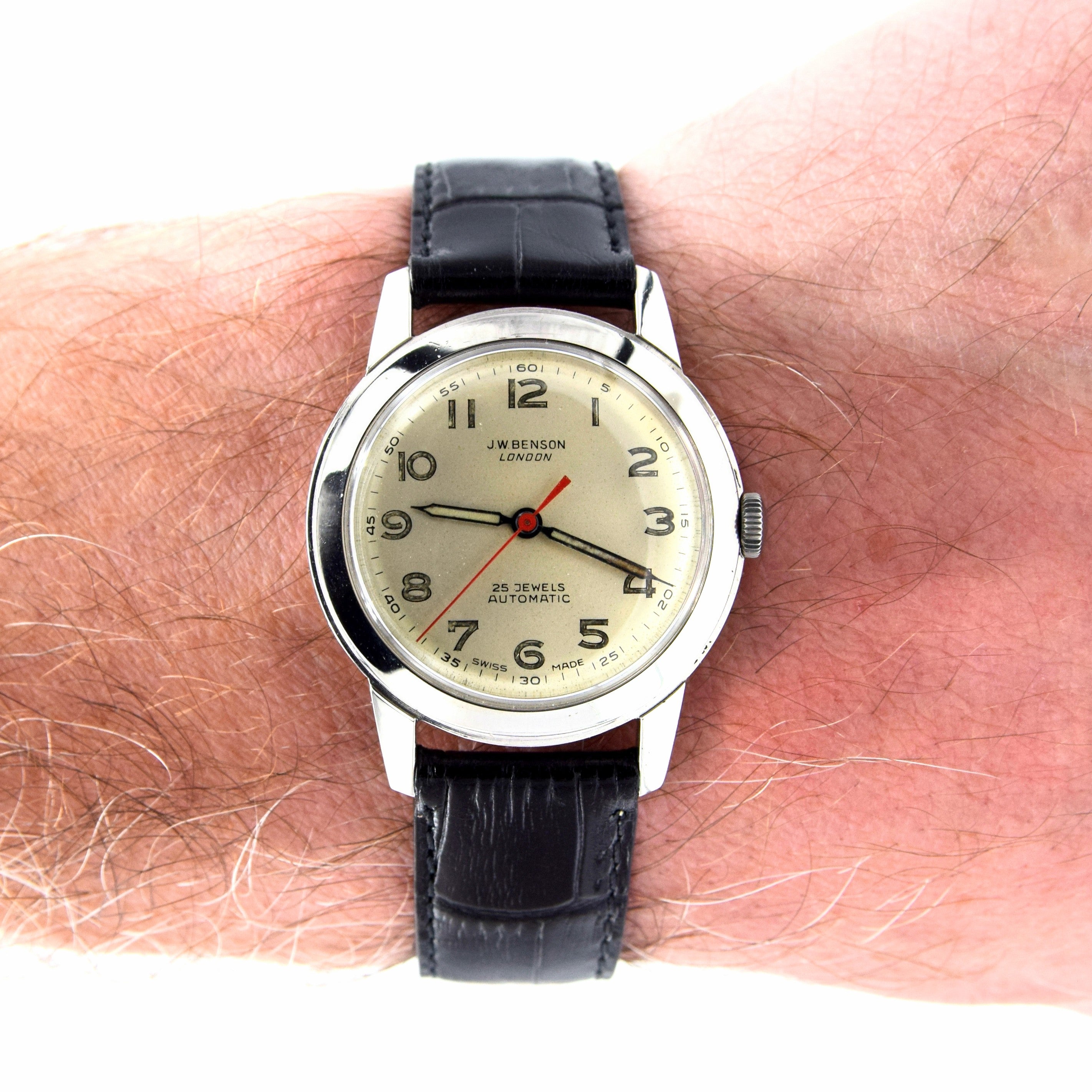 60s JW Benson early steel automatic classic watch with attractive Arabic Numeral dial