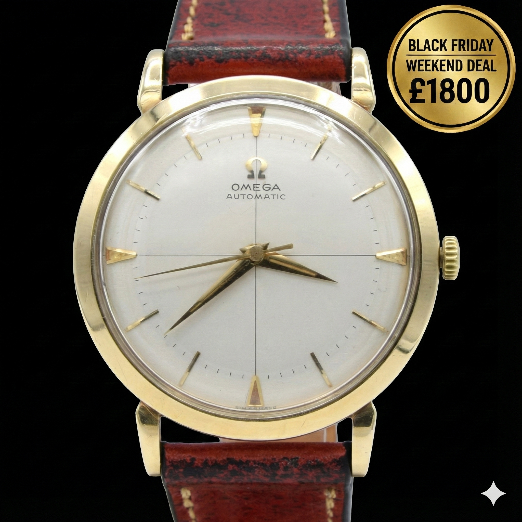 Finding a 9ct solid gold piece from this era in such fantastic, all-original condition is becoming increasingly difficult. The case lines are crisp, and the dial is exceptionally clean. The cherry on top for collectors is undoubtedly the presence of its original gold-plated Omega buckle—a small detail that adds significant value and completes the package. We’ve paired it with a rich burgundy strap which we think contrasts perfectly with the warm yellow gold, making it ready to be the highlight of your dress watch collection.