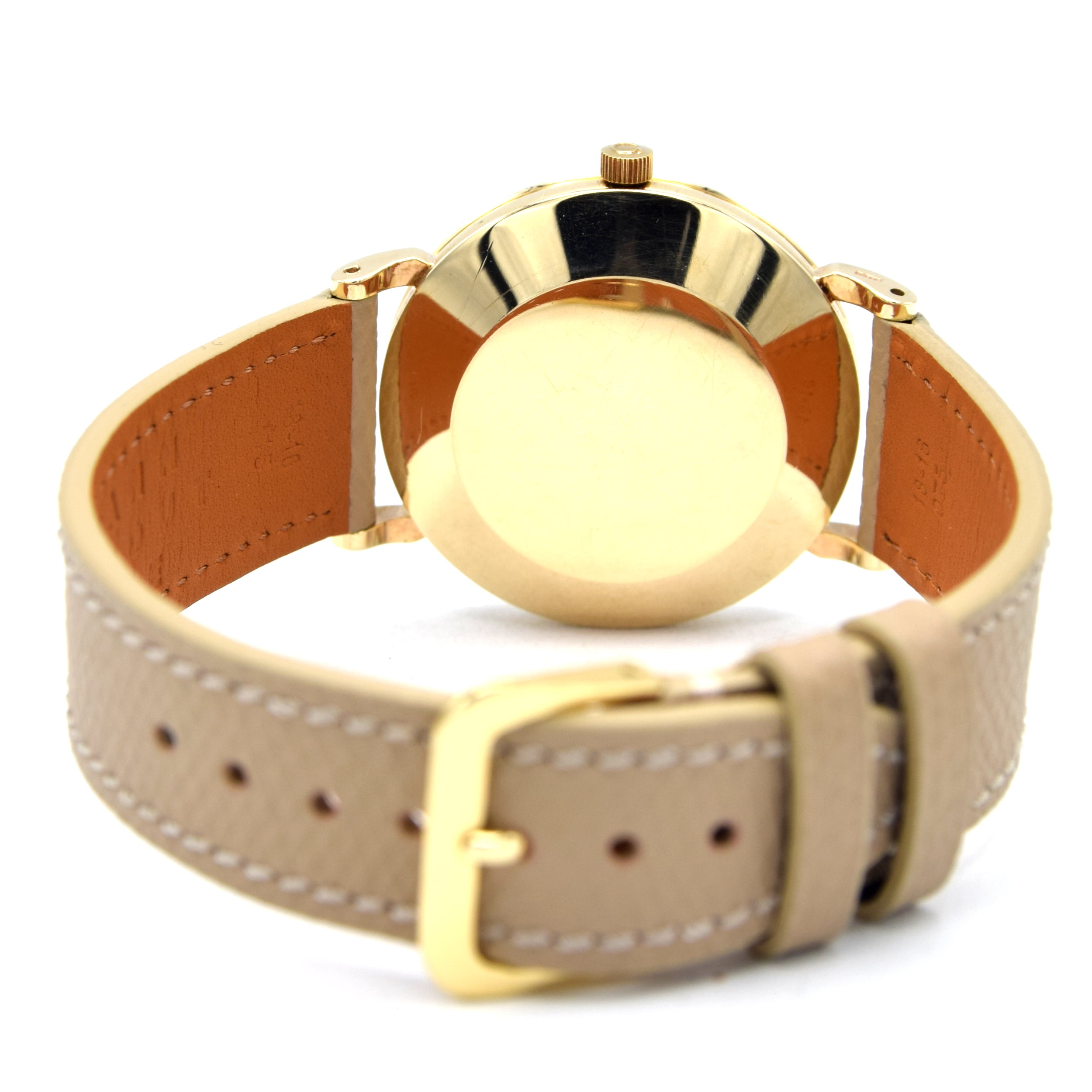 Finding a 9ct solid gold piece from this era in such fantastic, all-original condition is becoming increasingly difficult. The case lines are crisp, and the dial is exceptionally clean. The cherry on top for collectors is the original factor! a detail that adds significant value and completes the package. We’ve paired it with a up to date strap which we think contrasts perfectly with the warm yellow gold, making it ready to be the highlight of your dress watch collection.