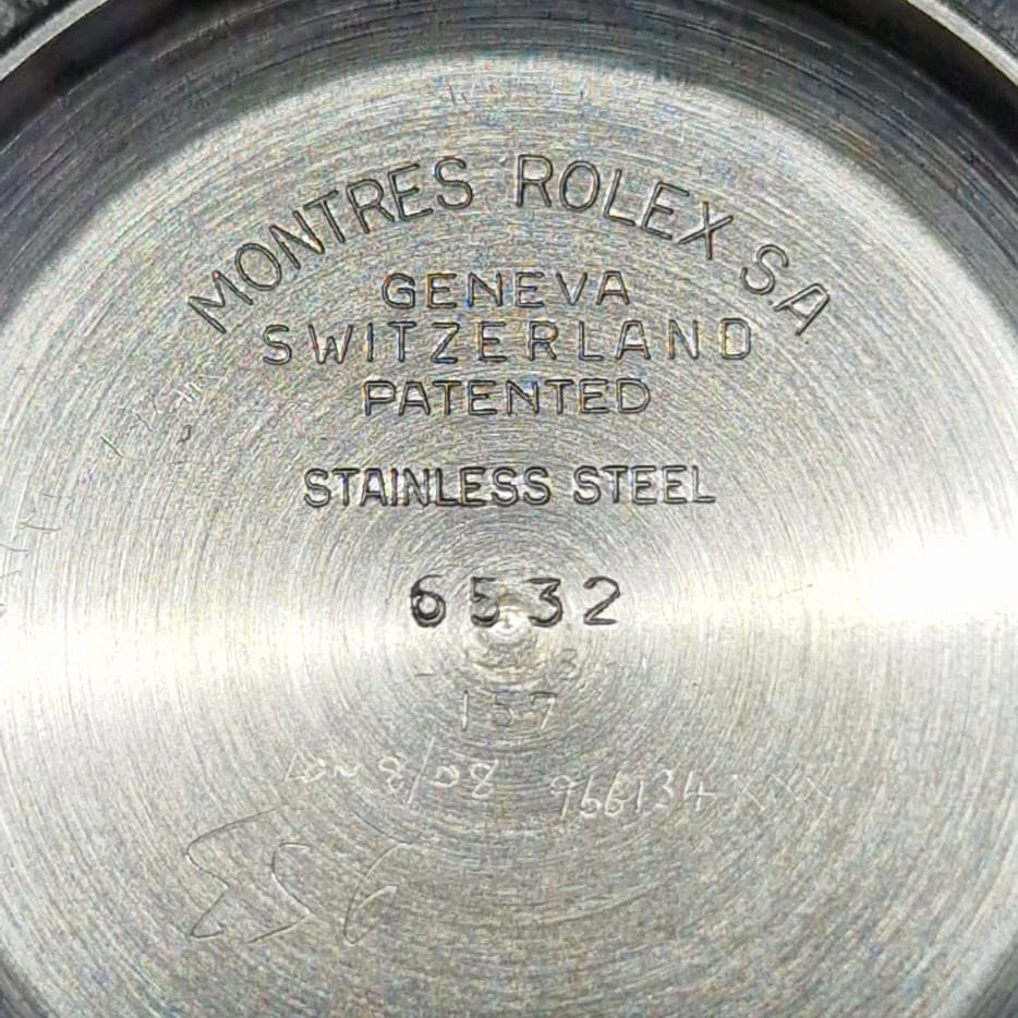 The watch is the Oyster Perpetual model 6532 in stainless steel, powered by Rolex’s calibre 1030 — one of the key movements that helped define Rolex’s post-war “reliable daily wearer” reputation. The case has that classic 1950s profile: smooth bezel, strong lugs, and a nicely proportioned dial opening that makes the watch feel bigger on the wrist than the numbers suggest.