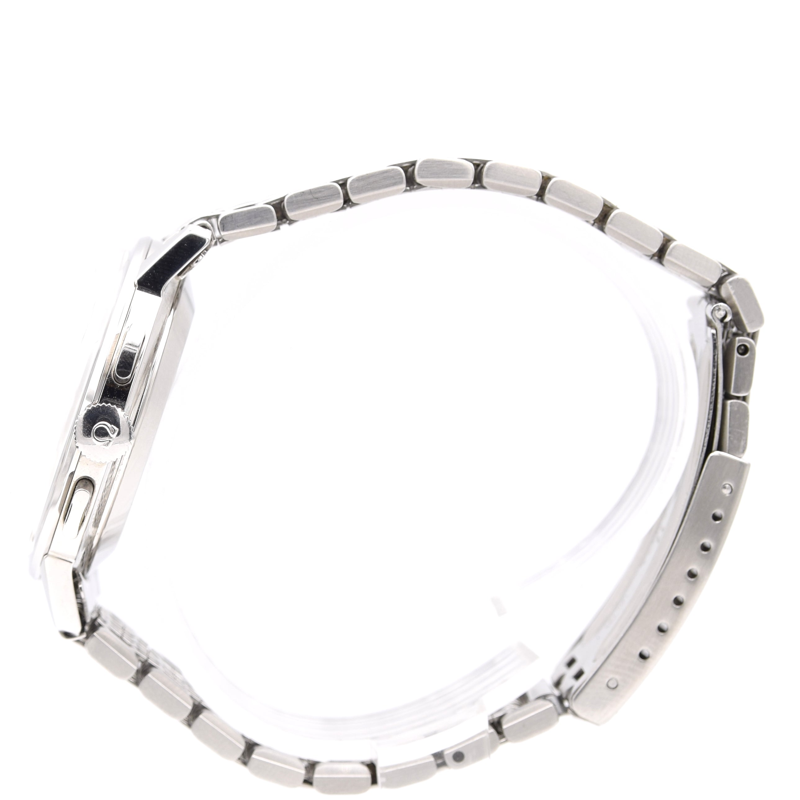 Case: The watch features a classic under stated round , three piece clip back case in stainless steel.