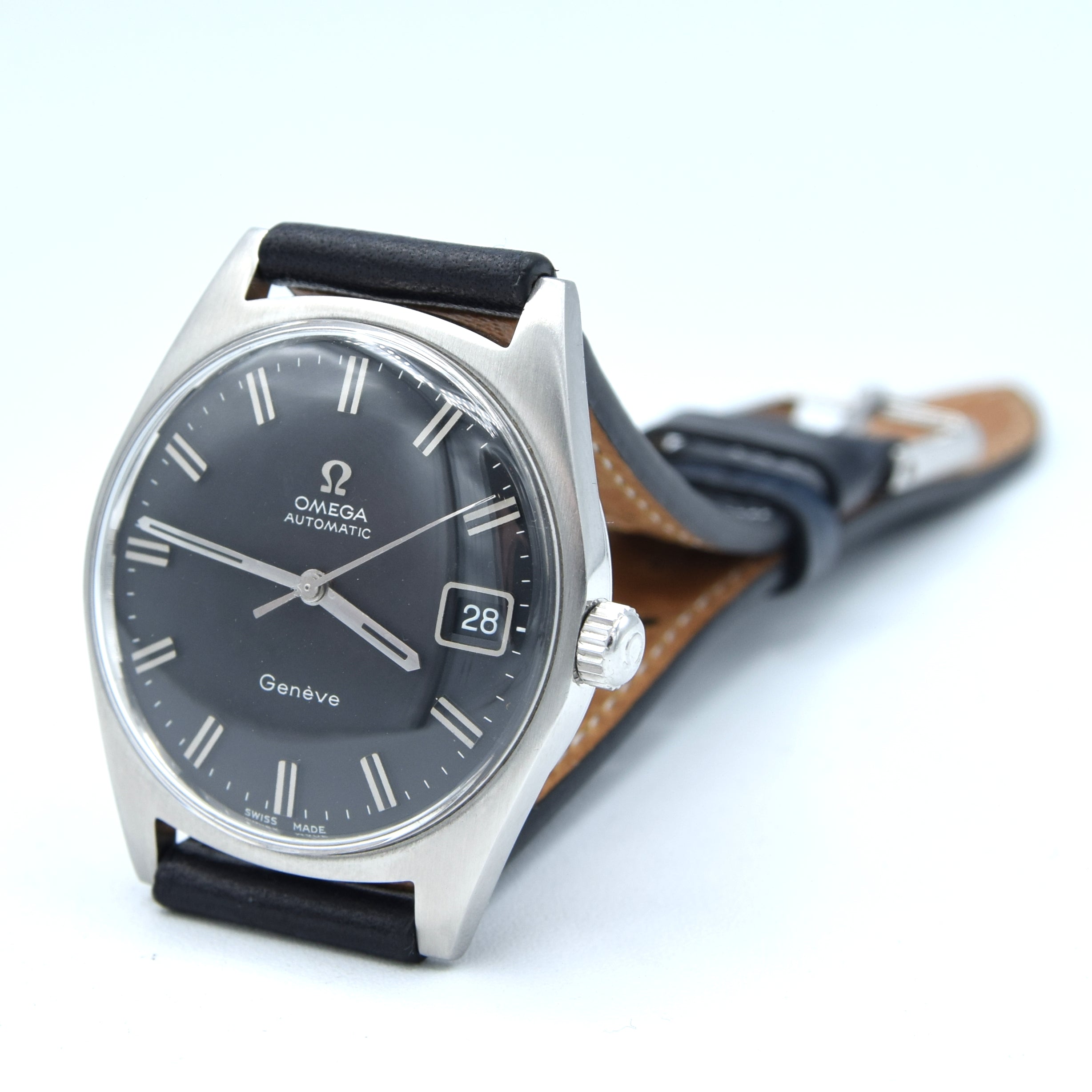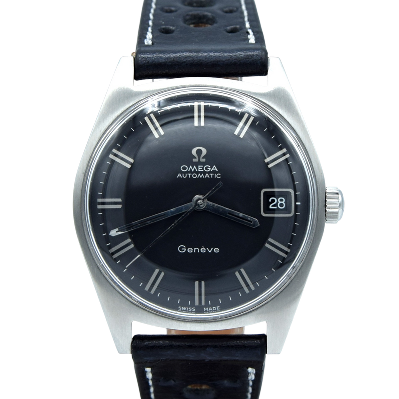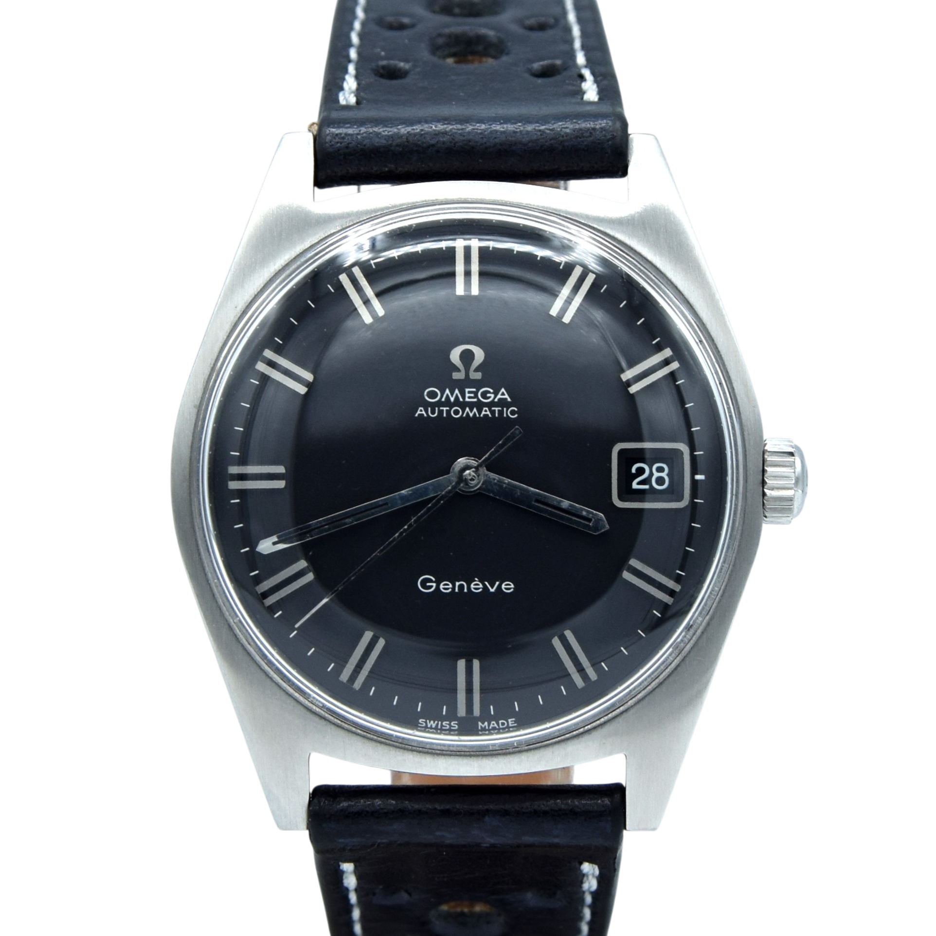 1968 Omega Geneve Automatic Date Model 166.041 original mint matte black dial in Steel Cal 565