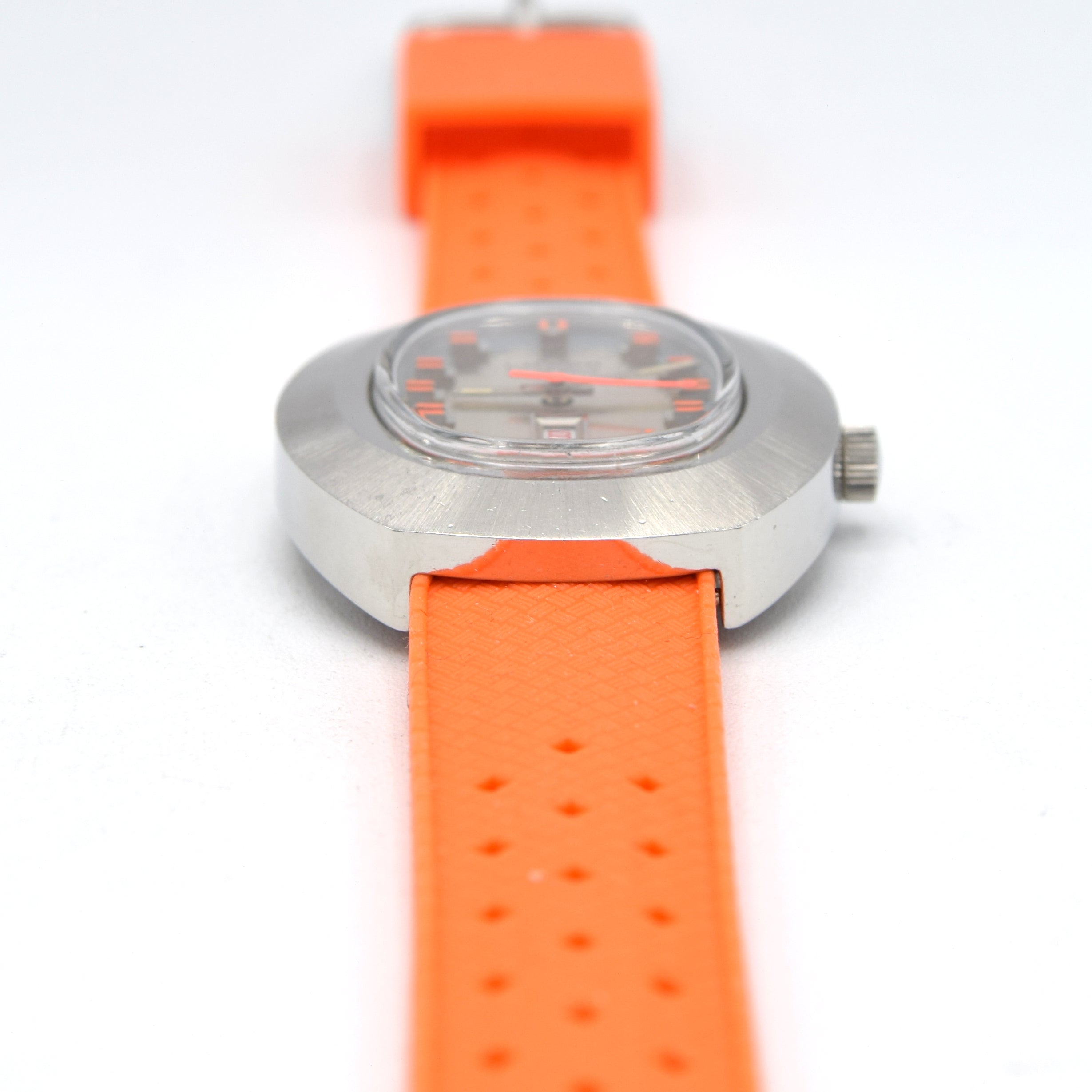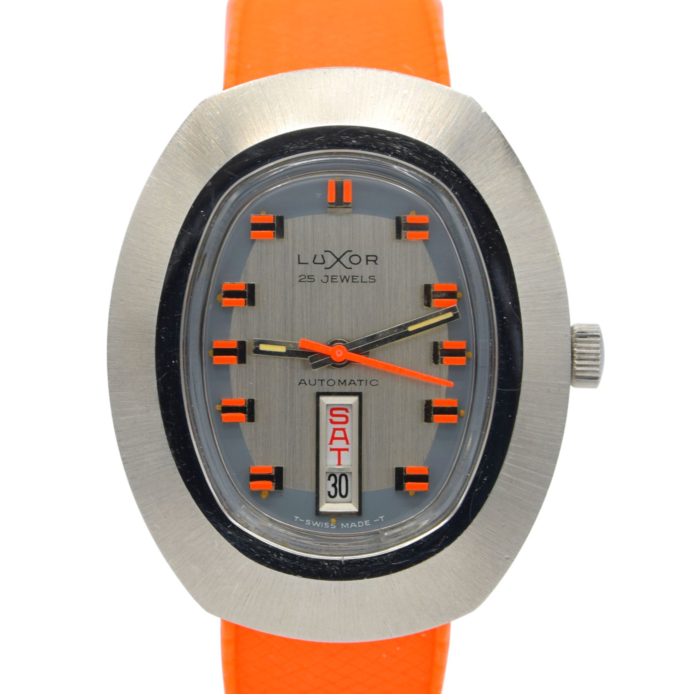 1970s luxor Day Date auto watch - TV Case - Automatic Day-Date Swiss ETA, Orange retro Racing Dial