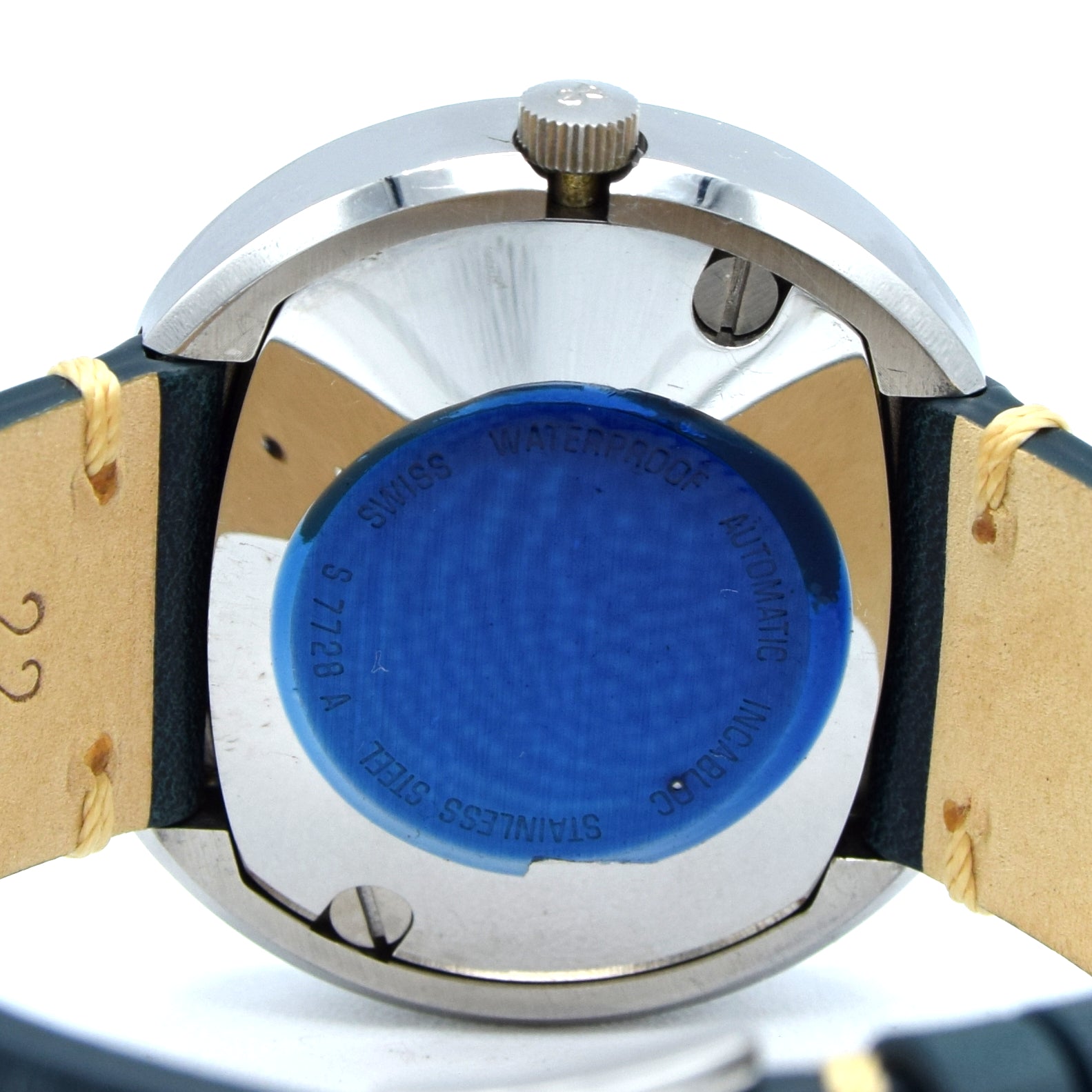 1970s Radical Kilimandjaro Blue 'Holographic 3D dial' Day Date automatic watch in Stainless Steel NOS