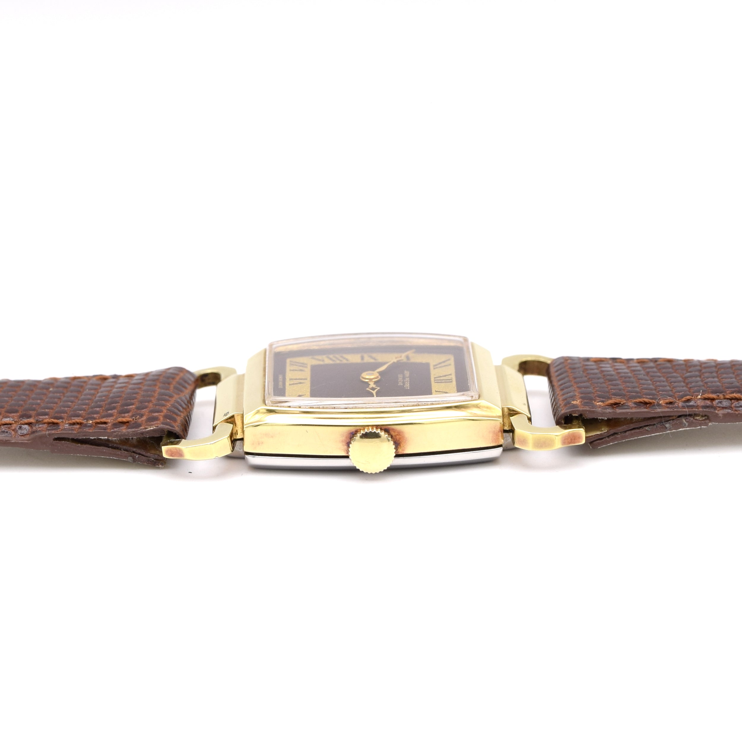 Rectangular/tank watches are absolutely back in fashion—icons like the Cartier Tank and Jaeger-LeCoultre Reverso have helped push “shaped watches” into the spotlight again, and this Jean Perret hits the same design itch with a more unusual, collector-friendly twist. Such an attractive around piece from the stylistic flexible lugs to the Roman chapter dial. Has the look of a far more expensive timepiece.