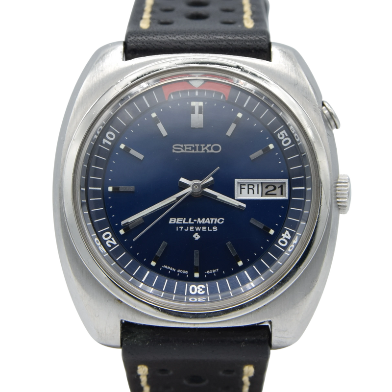 1974 Seiko Bell-Matic 4006-6031 automatic alarm watch with fabulous electric blue dial