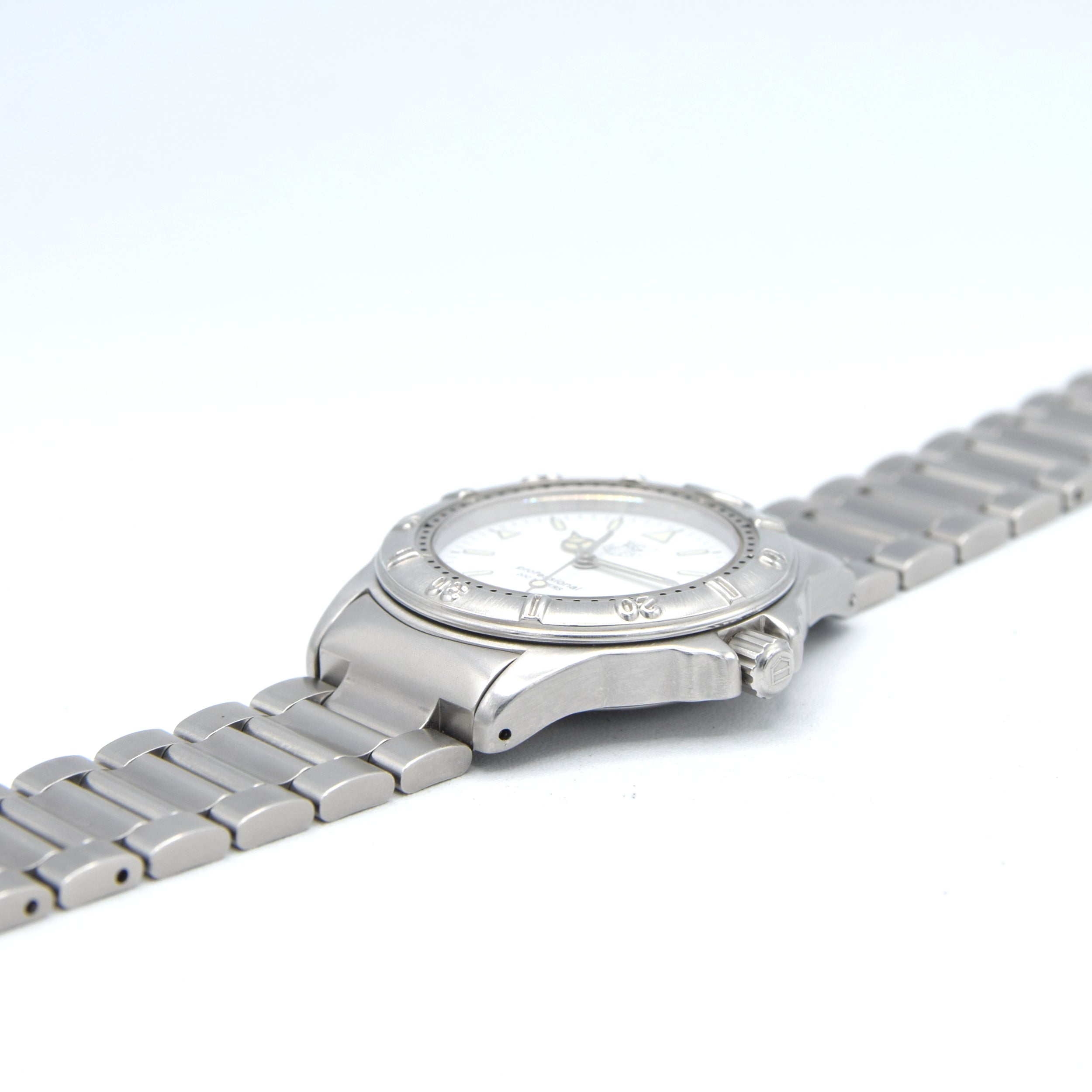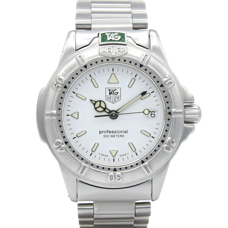 The TAG Heuer 4000 Series is pure 1990s “do-anything” Swiss sports watch — tough, practical, and seriously good value for what you get. This is the Mid-size TAG Heuer 4000 Swiss quartz, reference WF1212-KO, in all steel with the Rarer Polar White dial on its matching bracelet.