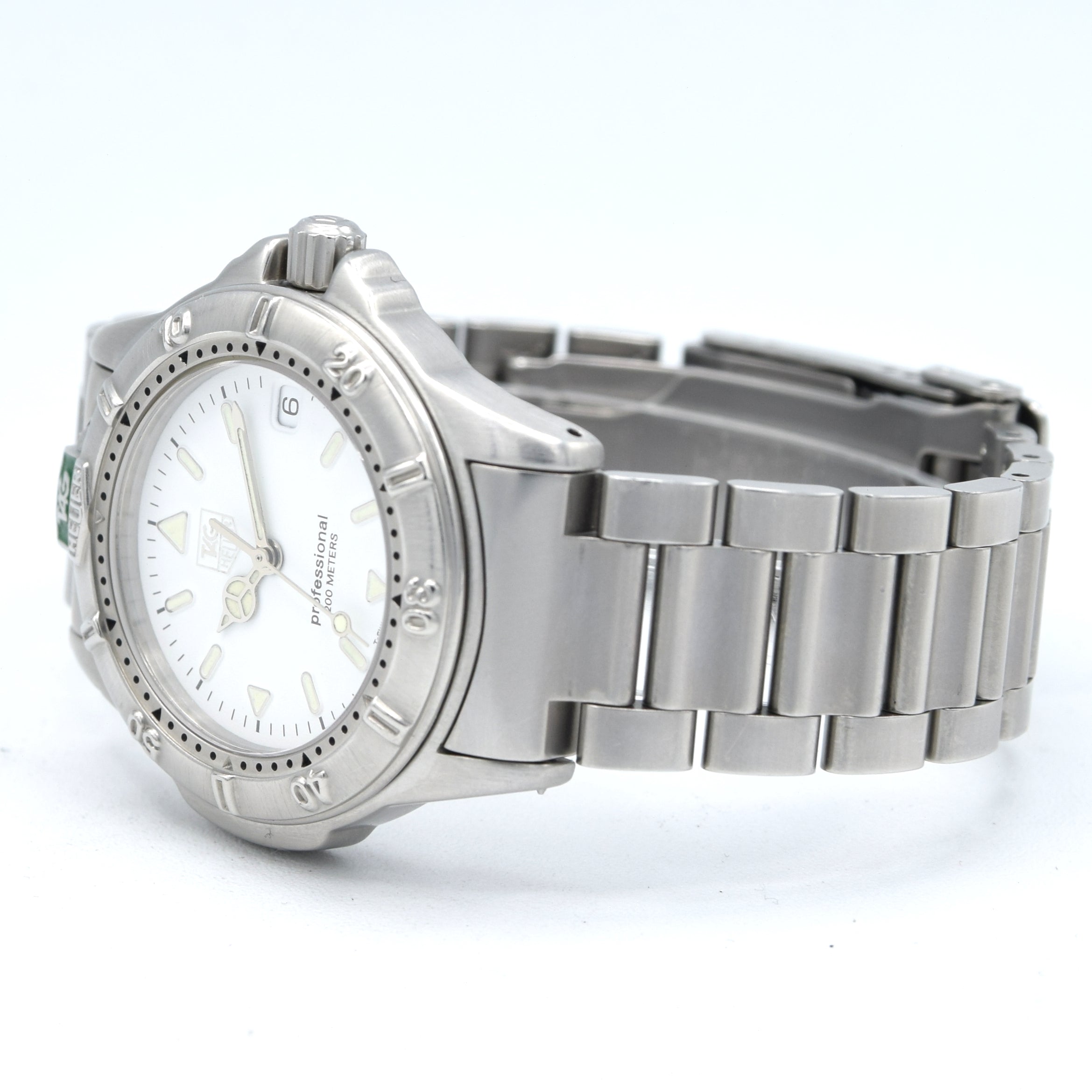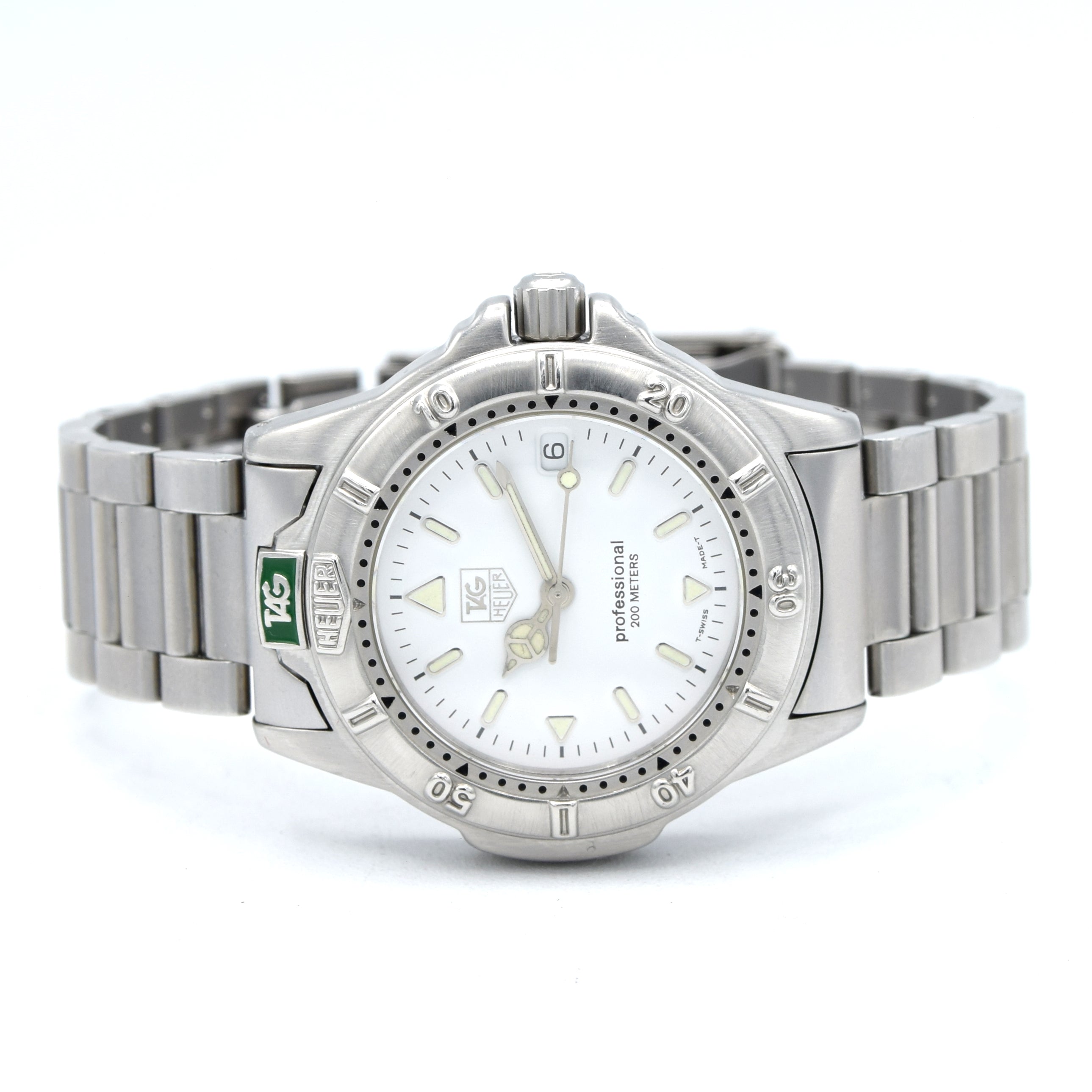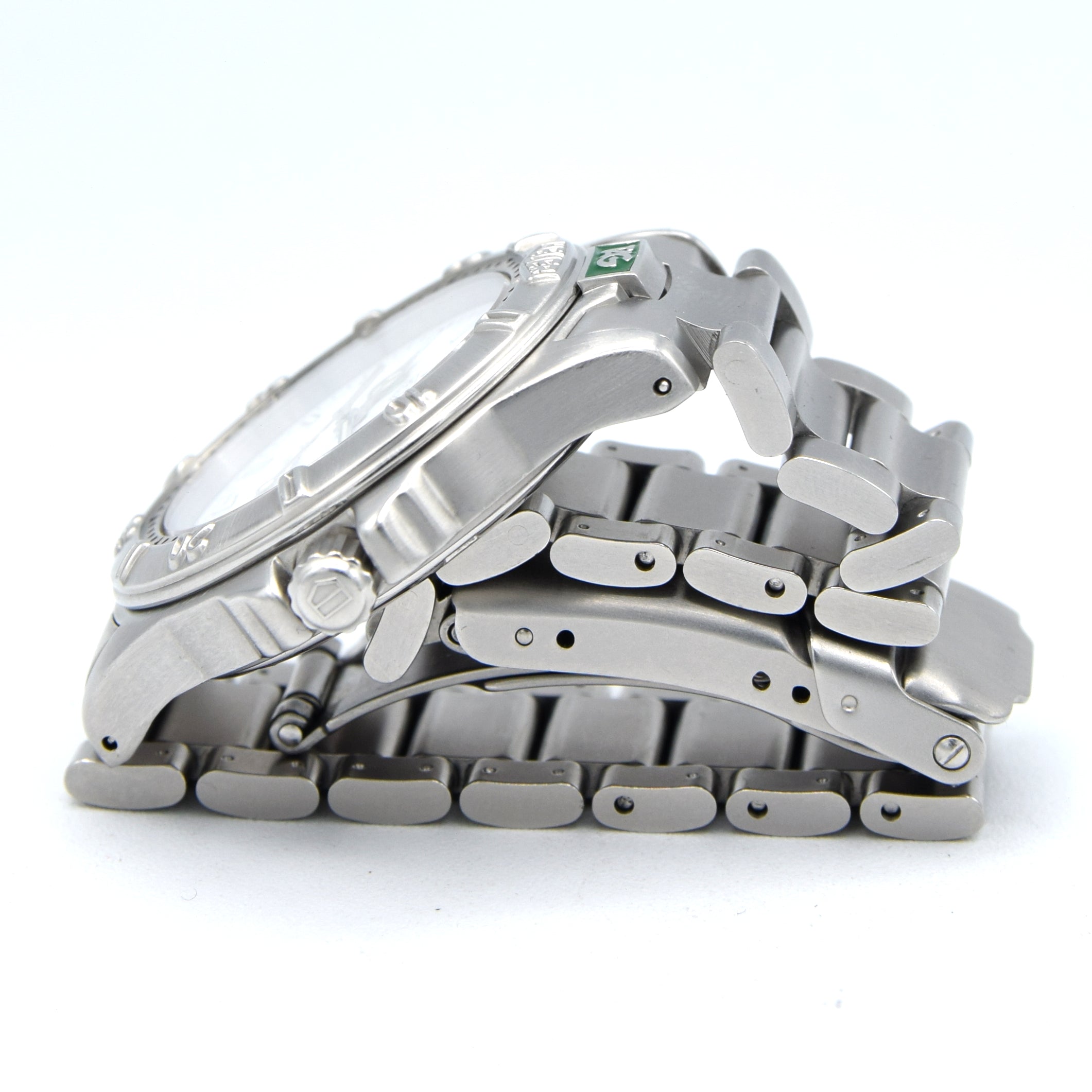 1990s TAG Heuer Date 4000 Series Polar white WF1212-KO - 34mm Stainless Steel on Flip-Lock Bracelet