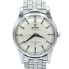 The watch has influences from the 1950s along with some new design influences of the 1960s, which complement the sleek elegance of the Constellation! The 34.5mm stainless steel, screw-back case is a comfortable wear and the case back has the Geneva Observatory surrounded by eight stars - the official motif of the Constellation. Inside is the automatic, chronometer tested and officially certified, Omega caliber 551, fully serviced by us and running strongly. We've kept this watch in it's original condition and on it's original, stainless steel, early brick link bracelet, but it looks great on leather, too!