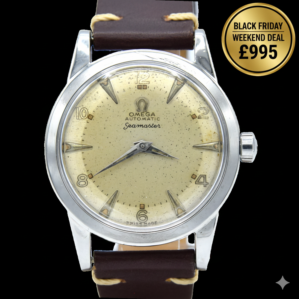 We love the feel of the bumper movement inside the watch. It just sings 1950s technology to us! What we love even more though, is when that movement is with an all-original watch! And a Seamaster no less! Looks great on both genders and a must-have in any collection!