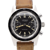 The 37mm, stainless steel unpolished case, with screw-down crow and two pushers, is a comfortable wear. Inside is the mechanical manual wind Landeron caliber 248, fully serviced by us and running strongly. We've paired this watch on a heavy Brown suede strap to push it into the 'everyday watch' category, but it looks great on black, or nato even with a sporty makeover on rubber.