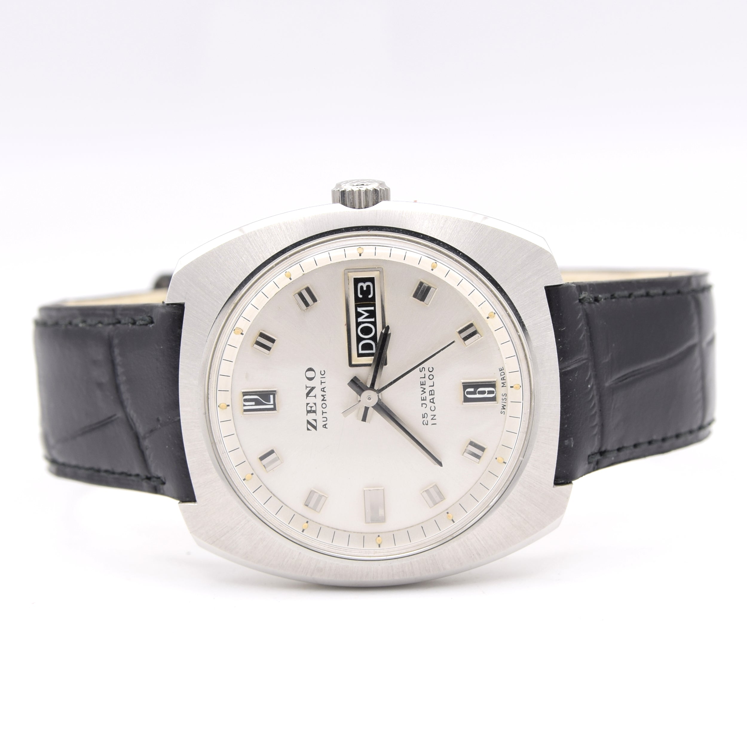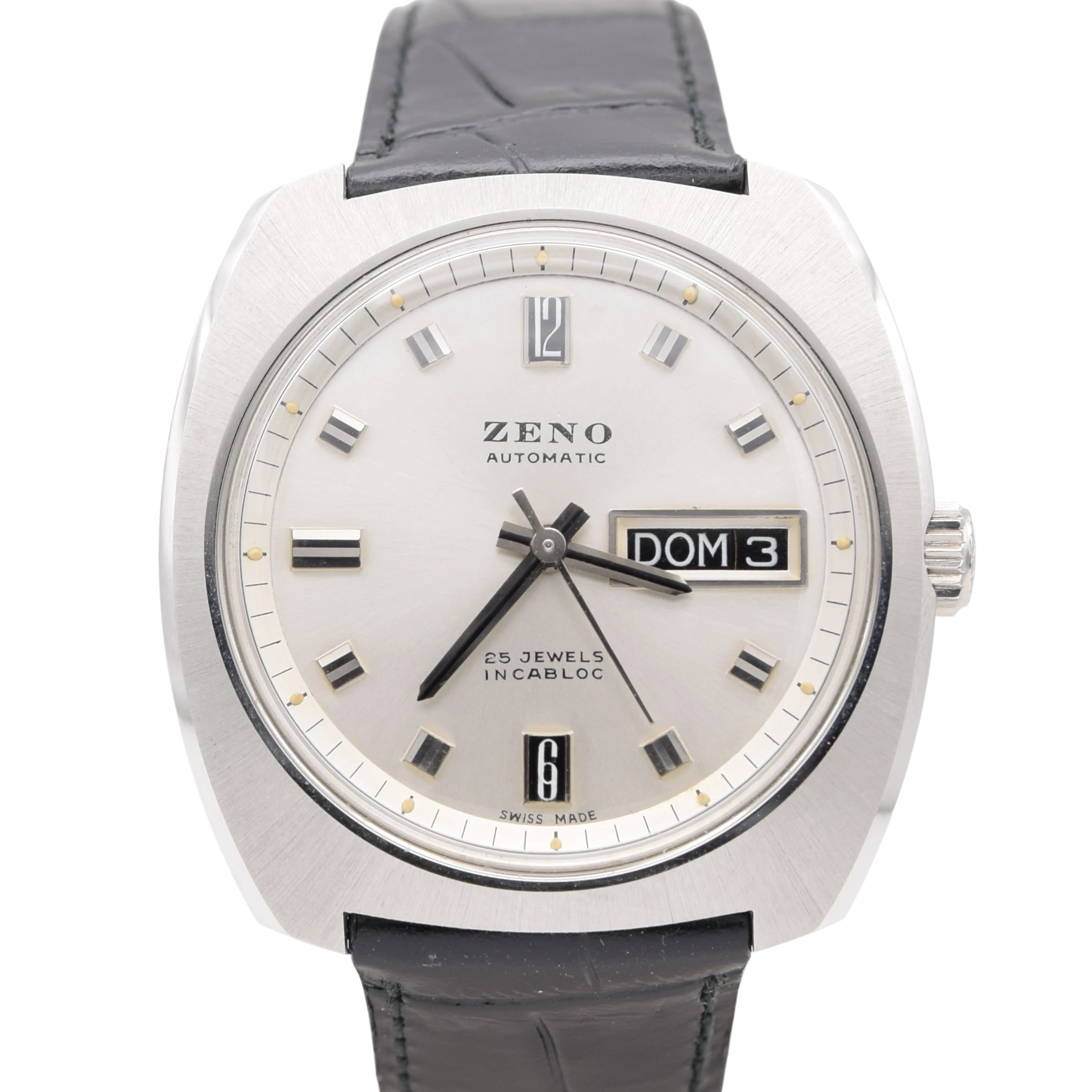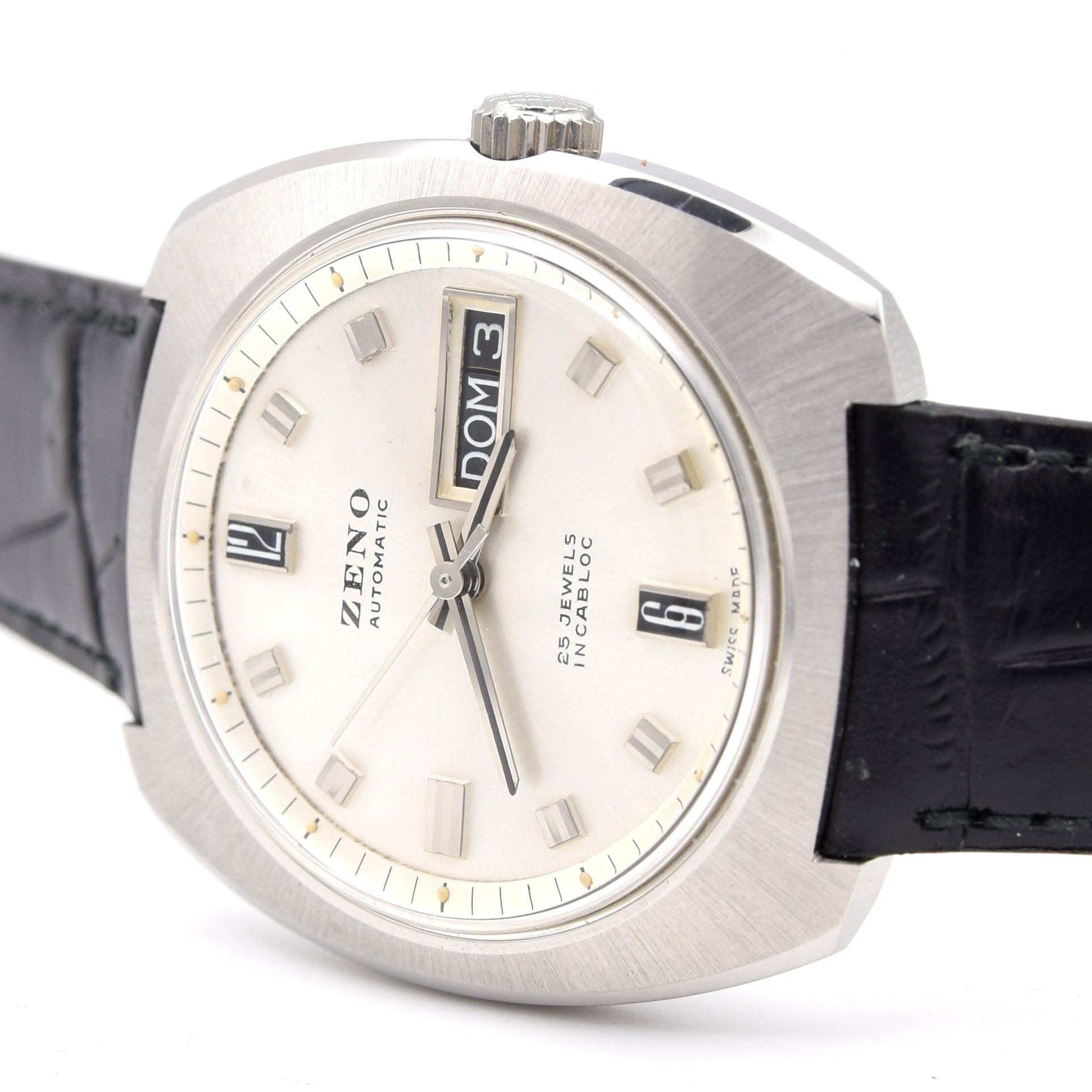 1970s Zeno Comprerssor Large Day / Date automatic watch Stainless Steel on Bracelet new old stock unused