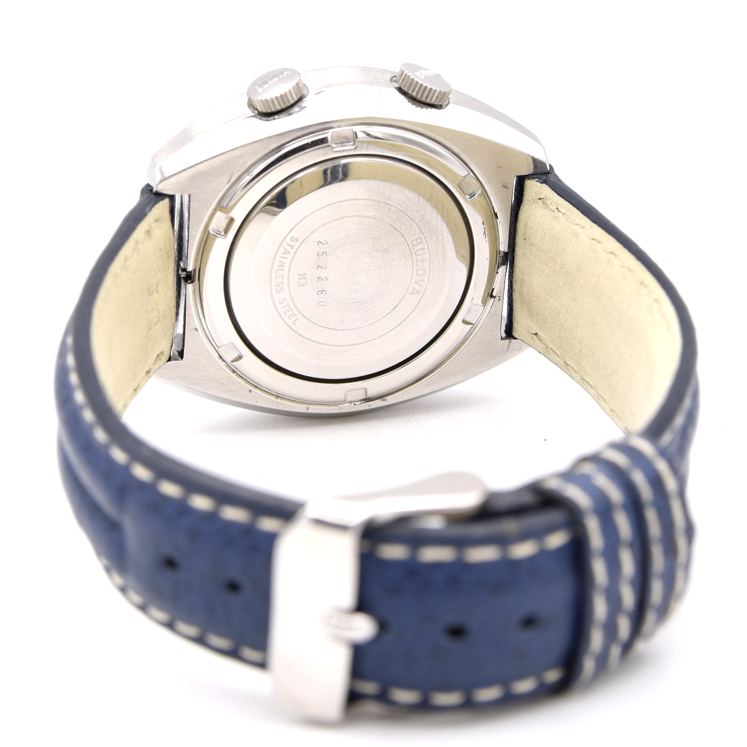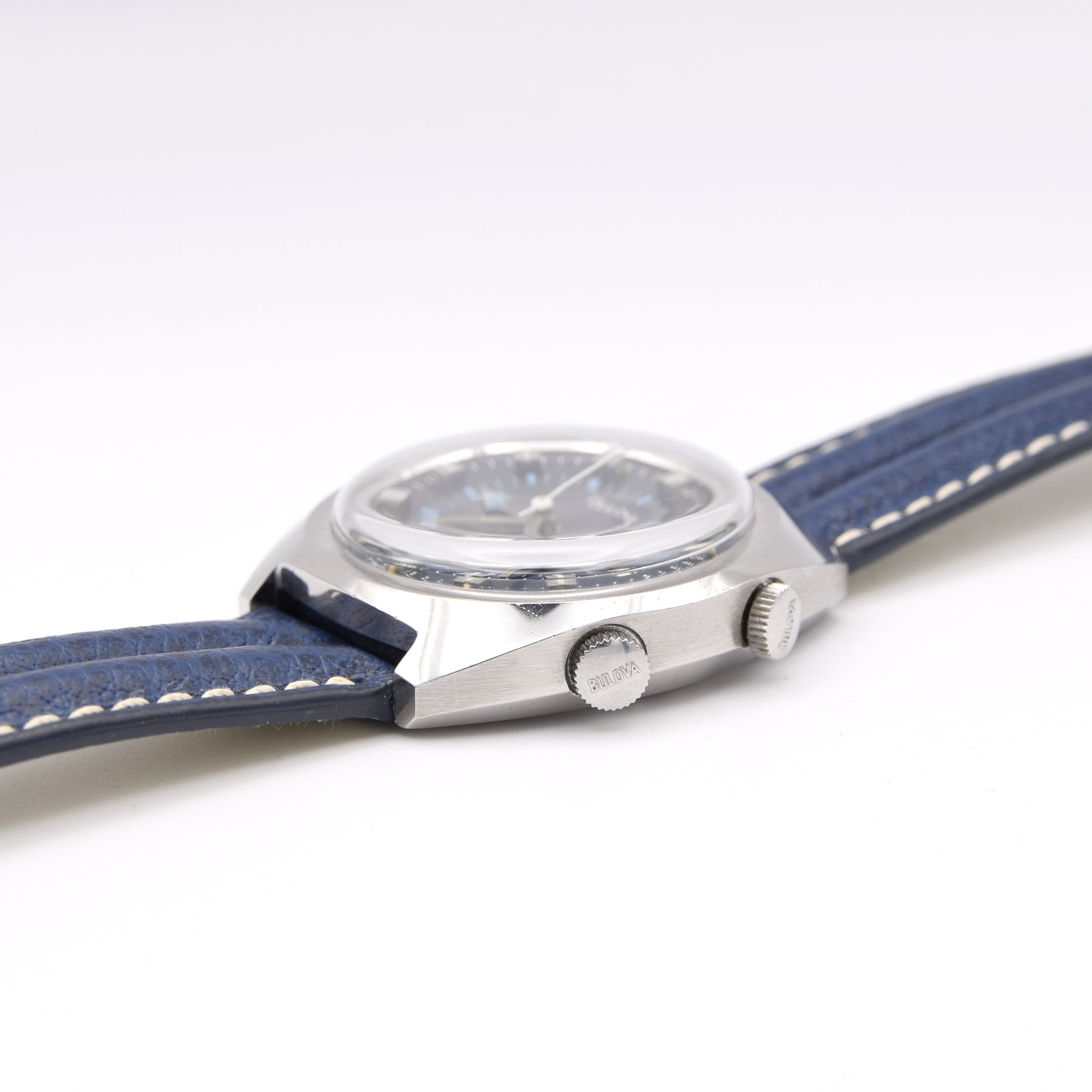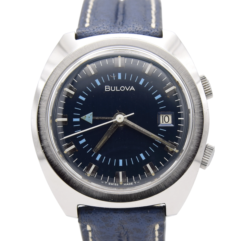 1973 Bulova rare swiss Alarm wristwatch ref 7241 - Blue dial 11AURCD caliber 36mm
