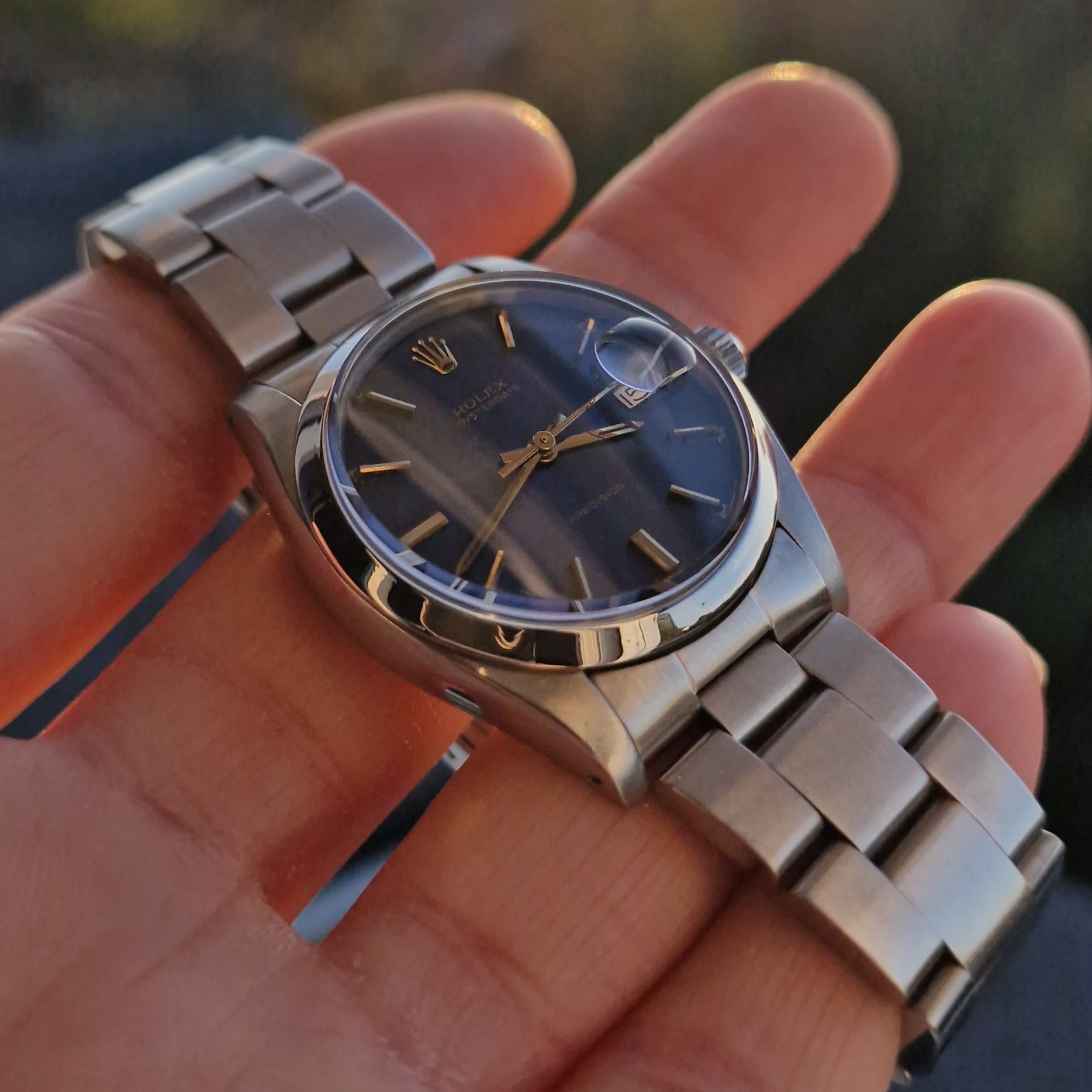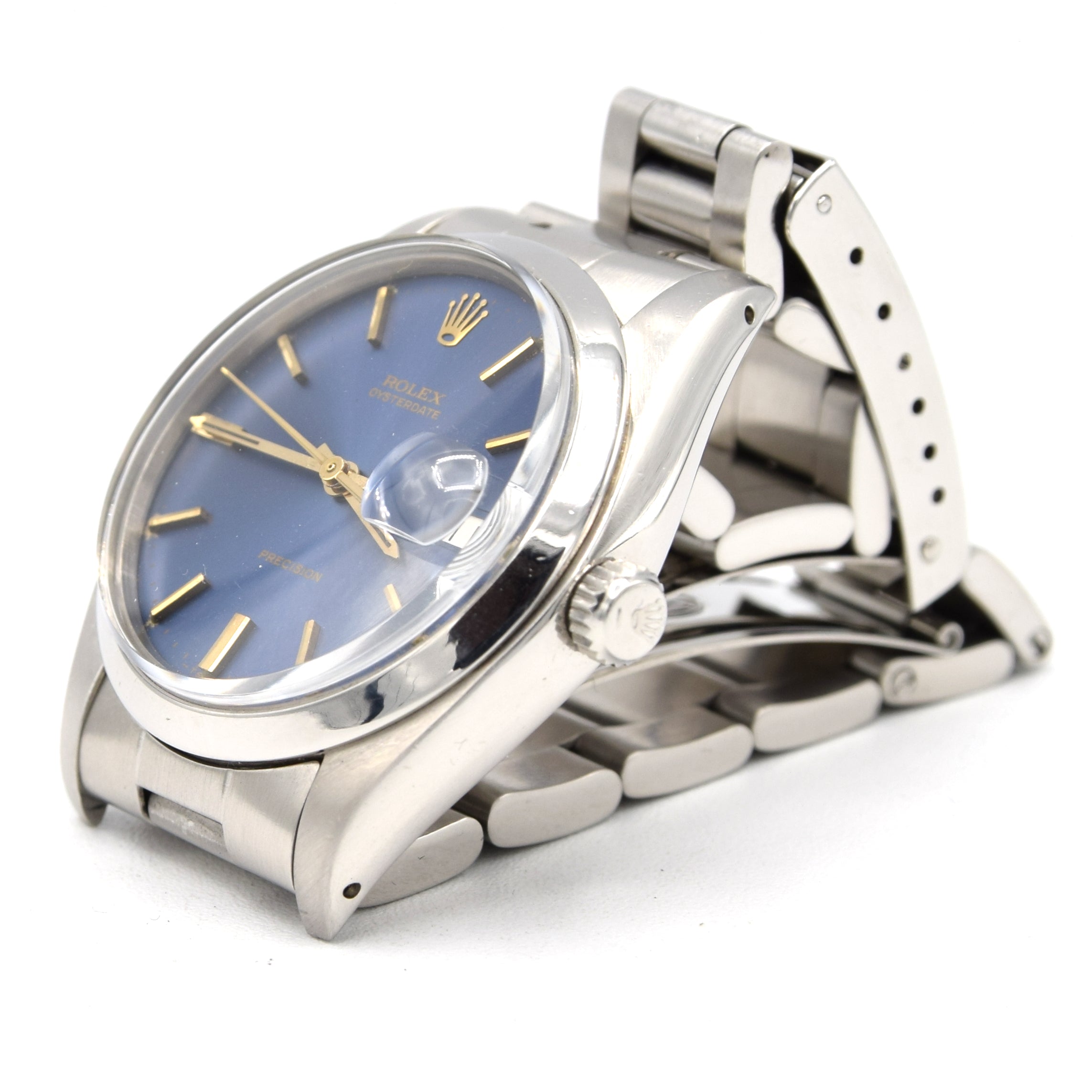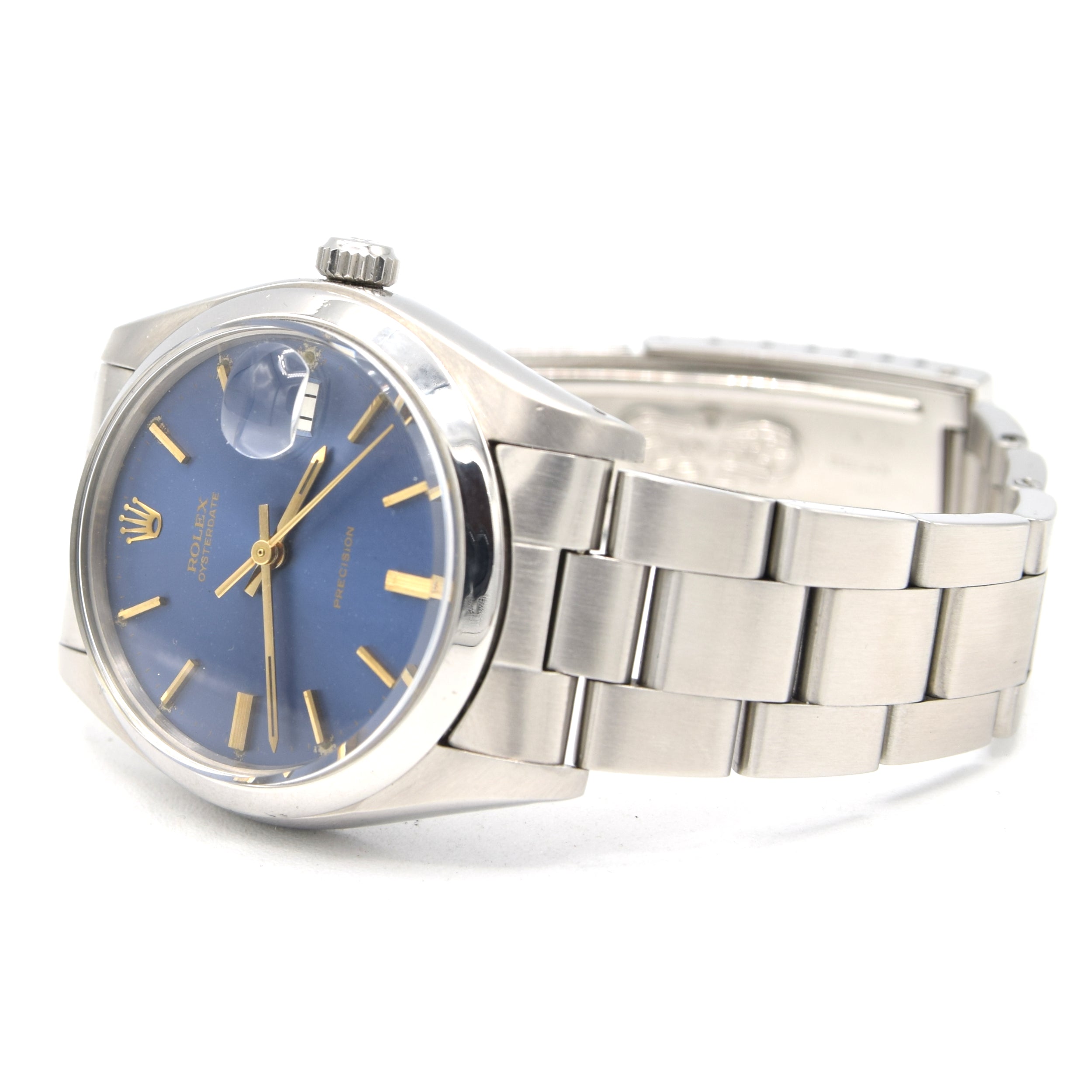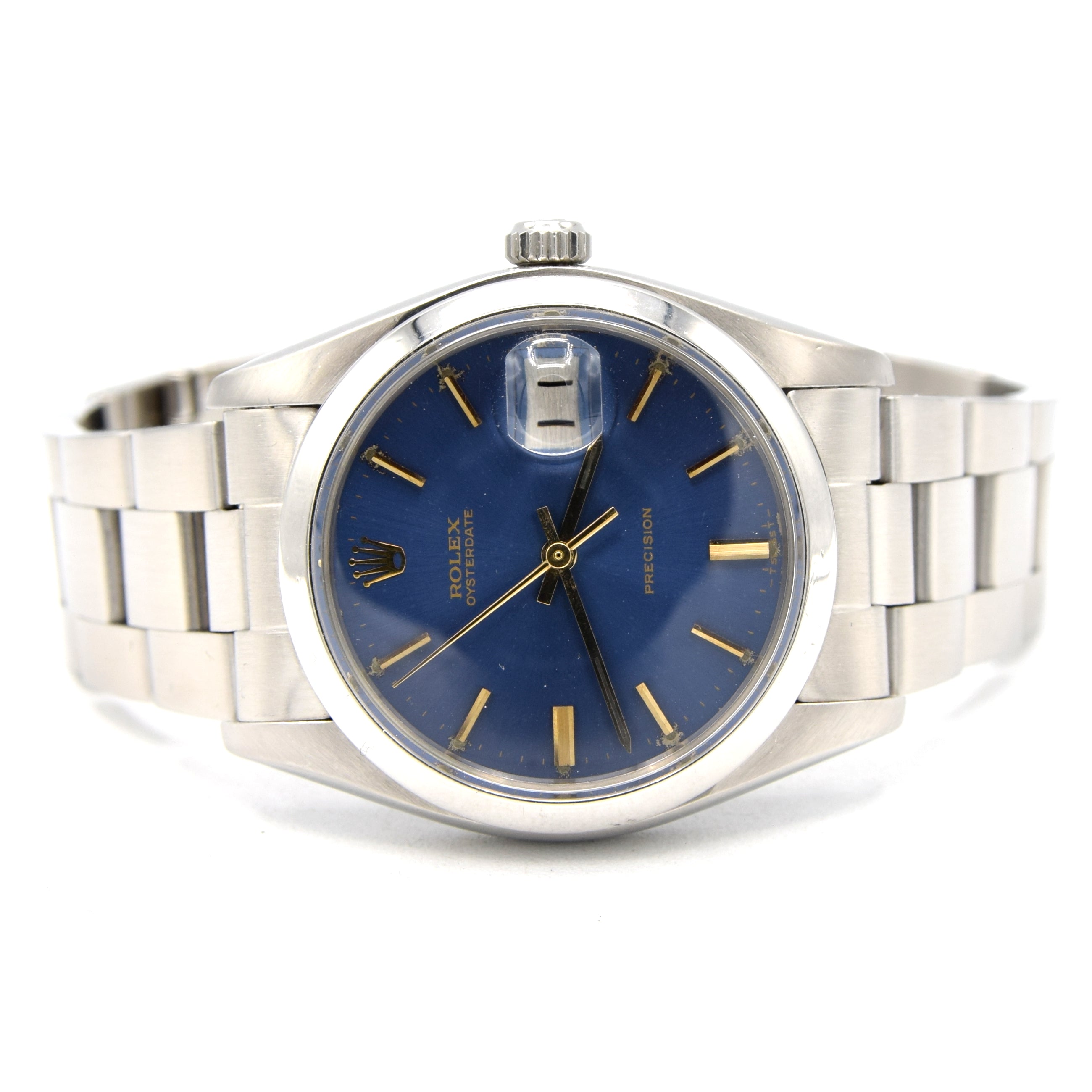 1981 Rolex Oyster Date Precision Classic Model 6694 with Stunning Blue satin Dial and gold Markers in Stainless Steel