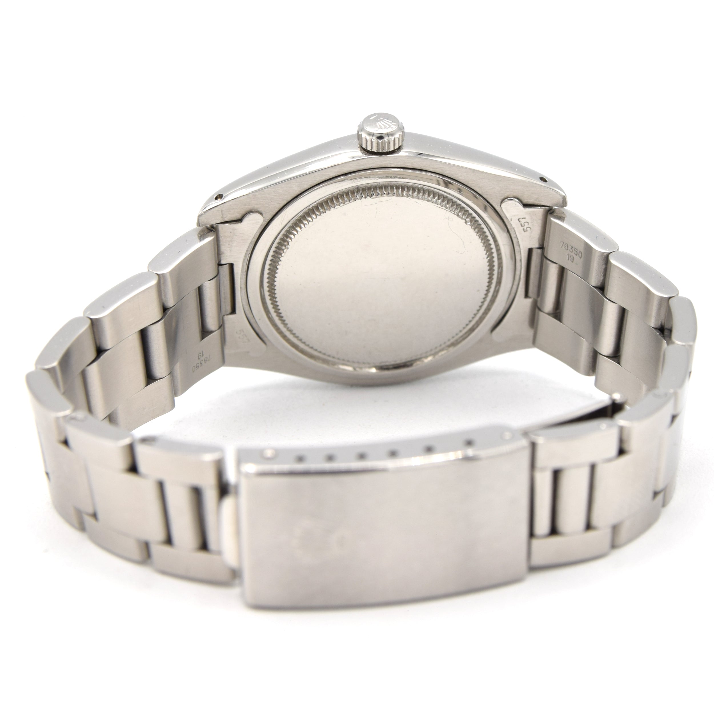 The stainless steel, screw-back case is complemented by a polished bezel, drawing your eye to that gorgeous dial, which is perfect and totally original. Inside is the manual wind, Rolex caliber 1225, fully serviced by us and running strongly. The watch sits on its original heavy stainless steel, Oyster bracelet and has a screw-down, Oyster crown. This watch is in great condition and only a light case and bracelet polish has been performed in our workshop.