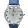 We do not see too many vintage Corum watches available today so were delighted to be able to offer this unusual ladies dress watch today! The quality of this slim, stainless steel watch needs to be appreciated. With its engine-turned bezel and stunning, satin silver, original dial. Even right down to the Corum-finished, high-grade, 21 jewel, mechanical Swiss movement, fully serviced by us and running strongly. A smart, sophisticated and slim piece with stunning Roman numerals and the famous Corum raised logo. An added bonus is its original Corum steel buckle. Note the Cartier-style cabochon winder and the design of this watch does give a nod to various Cartier design favorites.